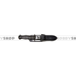 Комплектуется следующими аксессуарами: пластиковые ножны с замком, два резиновых ремня с пряжками.