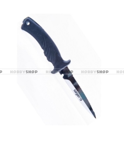 Практически нож под водой используется для разрезания сетей (в том маловероятном случае, если Вы в них запутались, а в основном, чтобы насолить браконьерам), использования в качестве рычага или чтобы привлечь внимание к себе, постучав им по баллону. А поскольку звук в воде распространяется в 4 раза быстрее, чем на поверхности, будьте уверены, Вас услышат.