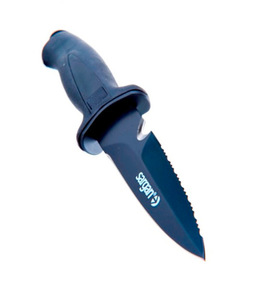 Практически нож под водой используется для разрезания сетей (в том маловероятном случае, если Вы в них запутались, а в основном, чтобы насолить браконьерам), использования в качестве рычага или чтобы привлечь внимание к себе, постучав им по баллону. А поскольку звук в воде распространяется в 4 раза быстрее, чем на поверхности, будьте уверены, Вас услышат.