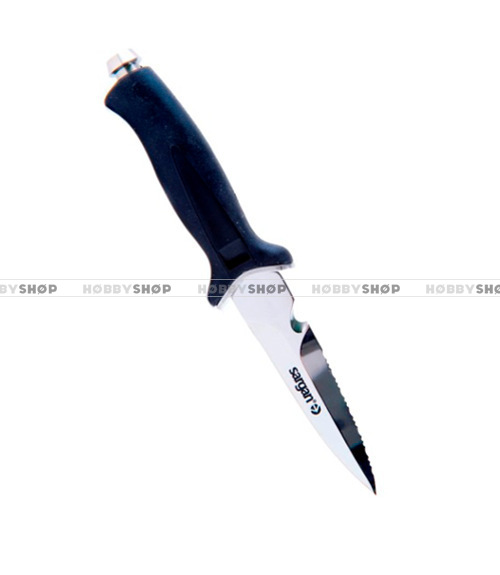 Подводный нож SARGAN Сейм – это прежде всего важный инструмент, а не оружие.  Функциональное лезвие из нержавеющей стали. Полипропиленовая рукоятка с покрытием из терморезины, очень удобная в использовании и препятствует выскальзыванию. На торце рукояти расположен стальной молоток. Полная длина ножа 24 см, длина лезвия 12 см. Зеркальная полировка лезвия отлично отражает свет даже под водой. Даже если вы потеряли нож, его достаточно просто будет отыскать по бликам.