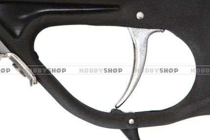 2. Удобная рукоять, с большим отверстием под указательный палец. Также на нее нанесено специальное покрытие от проскальзования с резиновой ярко-оранжевой накладкой с тыльной стороны, для удобства удержания. Внутри рукояти имеется герметичная полость, повышающая общую плавучесть ружья, а также предотвращающая эффект холодной рукояти. Отверстие в нижней части рукоятки для возможности крепления страховочного резинового кольца