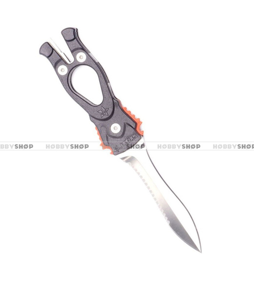 Удлиненная вогнутая линия реза, существенно облегчает разрезание одним движением различного рода шнуров, лесок, сетей - смертельную опасность для подводного охотника. Копьевидное острие клинка имеет хорошую проникающую способность, что позволяет уверенно обездвиживать даже самую крупную трофейную рыбу. Зеркальная полировка лезвия отлично отражает свет даже под водой. Даже если вы потеряли нож, его достаточно просто будет отыскать по бликам.