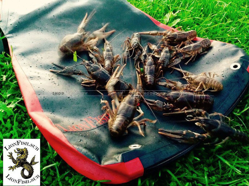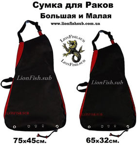 Кроме сбора морепродуктов сумку используют подводники, как вместительный карман для сбора подводных находок и хранения добытой рыбы. Сумка одевается на шею и пристегивается ремнем на поясе. Достоинством этой сумки являются регулируемые шлейки (талия, шея), молния в днище сумки, люверсы из нержавейки для спуска воды и отверстие-карман с клапаном. Сумка для раков скроена по типу передника. Лекала сумки - продуманы так, чтобы находиться спереди на теле подвоха, не мешать охотиться и одновременно собирать раков, крабов, мидий рапанов и т. д.